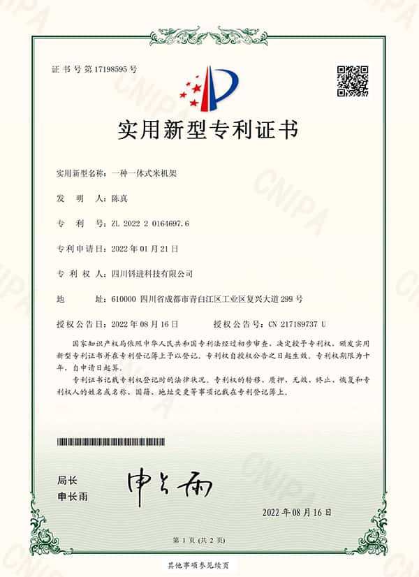 Oficialmente reconhecida como uma Pequena e Média Empresa (PME) Especializada, Refinada e Inovadora pelo Governo Provincial de Sichuan, destacando nossa liderança em tecnologia de beneficiamento de arroz e inovação contínua.